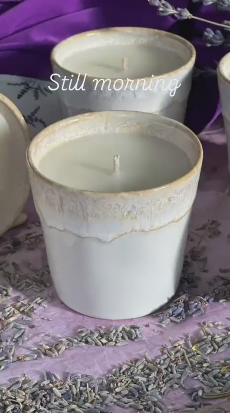 Poured into a beautifully glazed ceramic cup made from Portuguese stoneware, this candle contains approx. 175 g of natural soy wax and offers around 35 hours of burn time. After the candle is finished, simply wash the cup and reuse it as your new favorite coffee or tea mug.